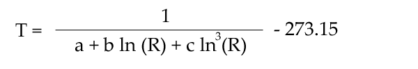 LPTH-1 are for user to connect nearly any type thermistors. The Steinhart-Hart equation is widely used for thermistors for a wide range